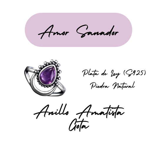 Anillo Amatista Gota - Amor Sanador - Plata de Ley