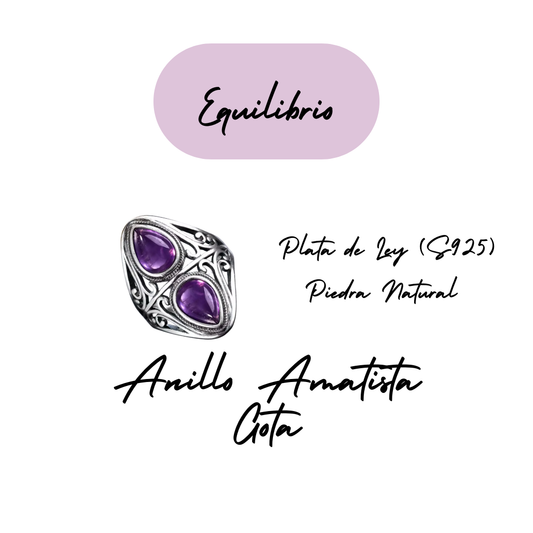 Anillo Amatista Gota - Equilibrio - Plata de Ley