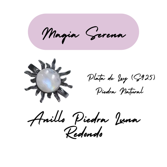 Anillo Piedra Lunar Redondo - Magia Serena - Plata de Ley
