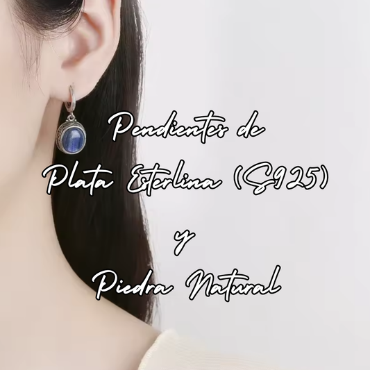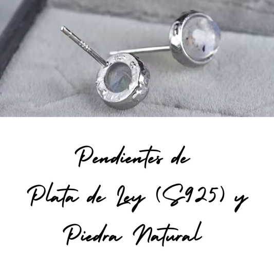 Pendientes Piedra Natural - Ovalados - Piedra Lunar - Plata de Ley