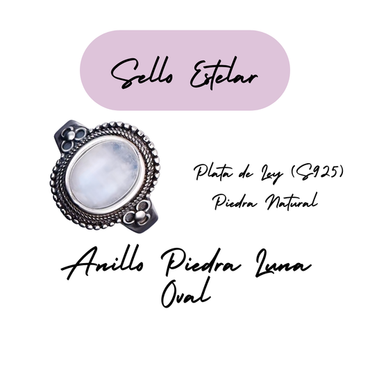 Anillo Piedra Lunar Oval - Sello Estelar - Plata de Ley