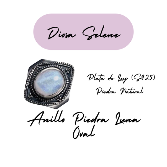 Anillo Piedra Lunar Oval - Energía de Diosa - Plata de Ley