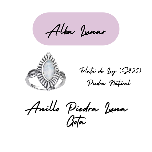 Anillo Piedra Lunar Gota - Alba Lunar - Plata de Ley