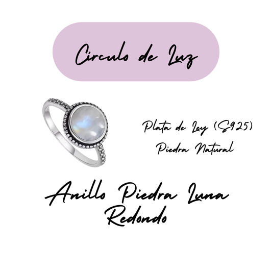 Anillo Piedra Lunar Redondo - Círculo de Luz - Plata de Ley