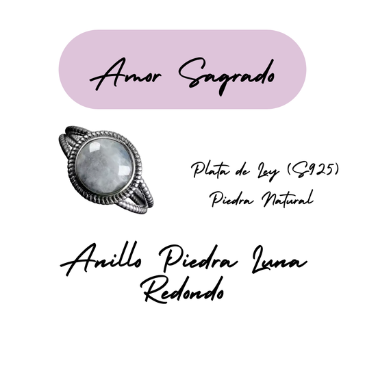 Anillo Piedra Lunar Redondo - Amor Sagrado - Plata de Ley