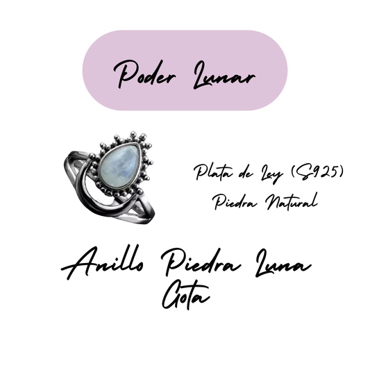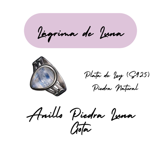 Anillo Piedra Lunar Gota - Poder Lunar - Plata de Ley