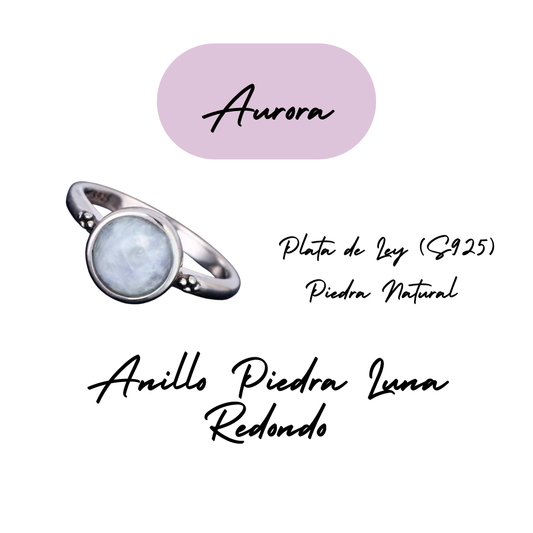 Anillo Piedra Lunar Redondo - Aurora - Plata de Ley
