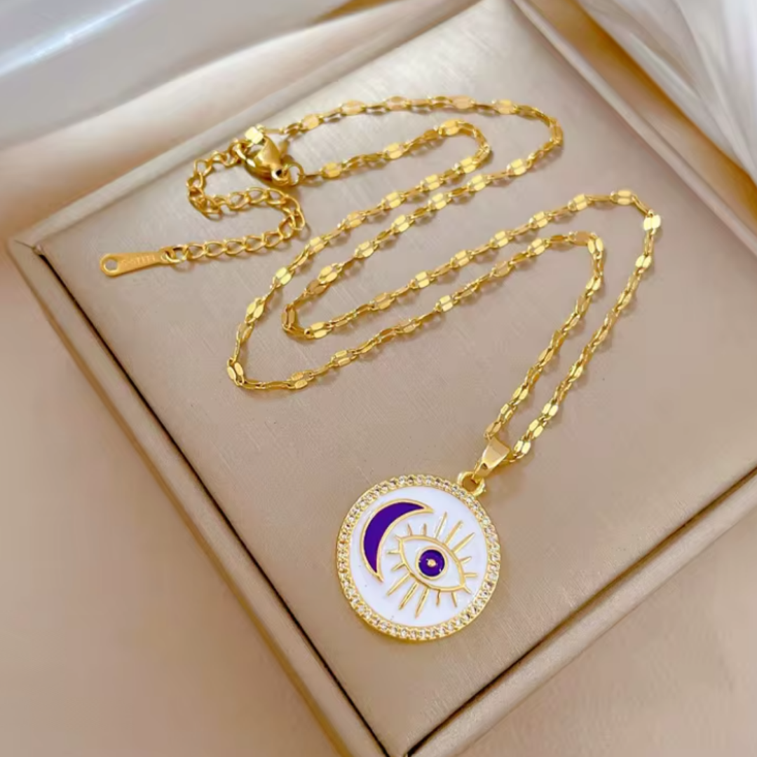Colgante de Acero Inoxidable con Ojo Turco y Luna