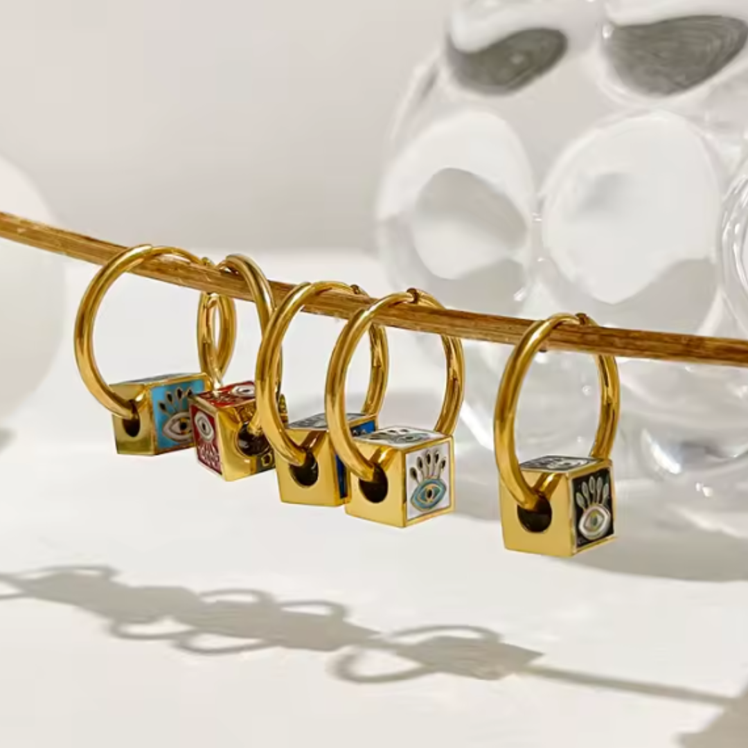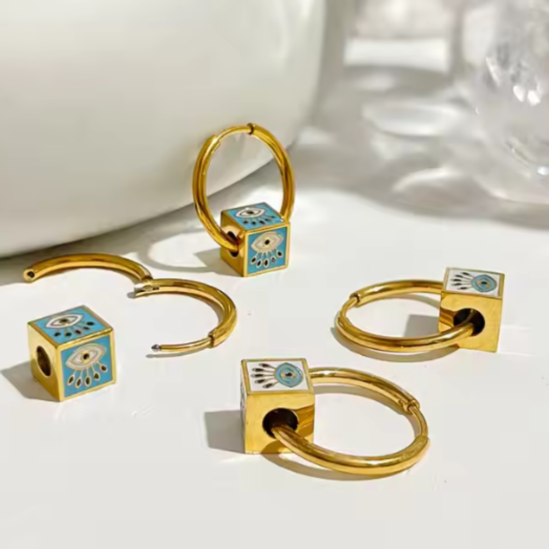 Pendientes de Aro de Acero Inoxidable con Ojo Turco