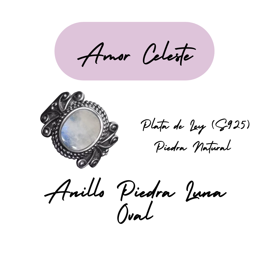 Anillo Piedra Lunar Oval - Amar Celeste - Plata de Ley