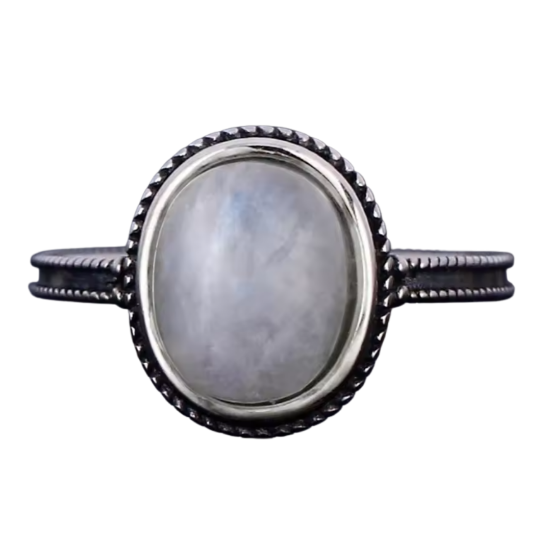 Anillo Piedra Lunar Oval - Brillo Lunar - Plata de Ley