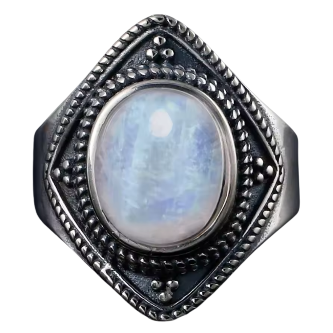 Anillo Piedra Lunar Oval - Diosa Selene - Plata de Ley
