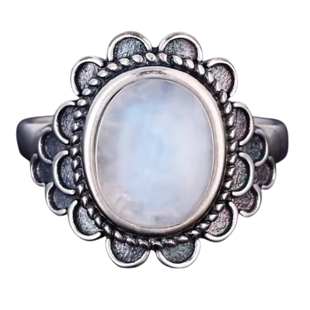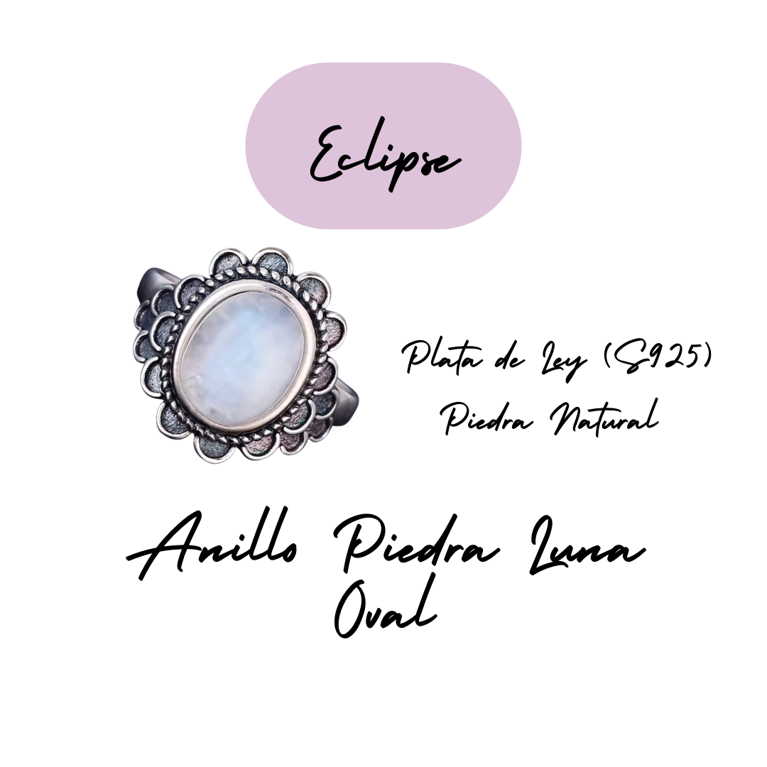 Anillo Piedra Lunar Oval - Eclipse - Plata de Ley