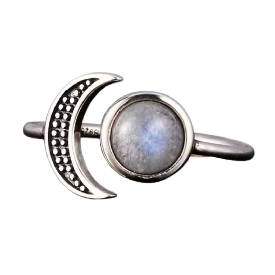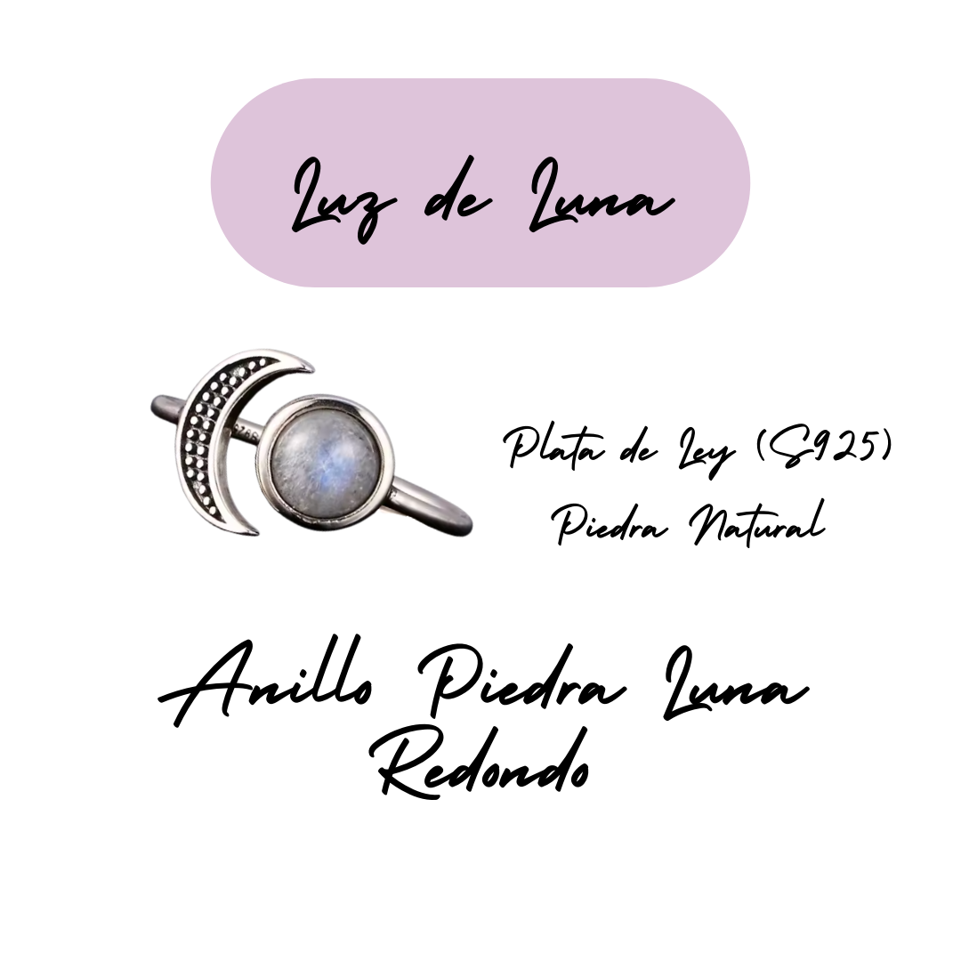 Anillo Piedra Lunar Redondo - Luz de Luna - Plata de Ley