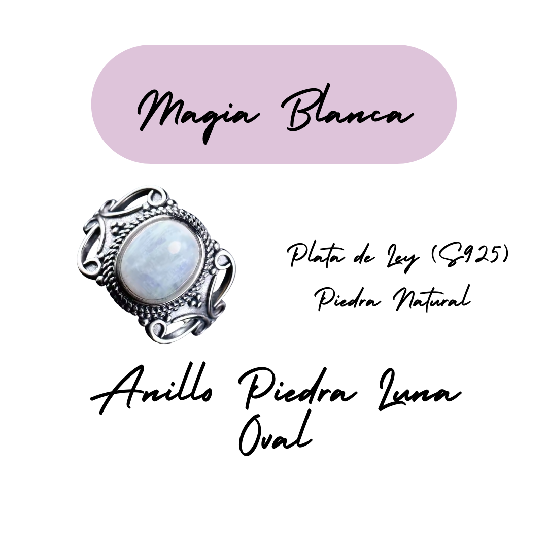 Anillo Piedra Lunar Oval - Magia Blanca - Plata de Ley