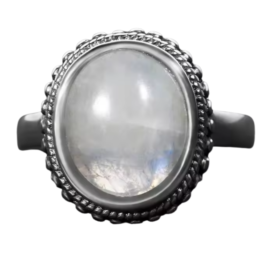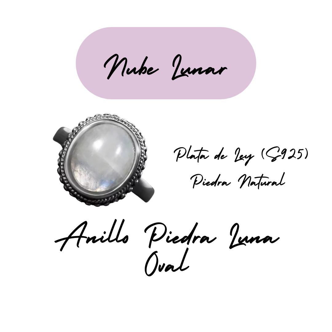Anillo Piedra Lunar Oval - Nube Lunar - Plata de Ley